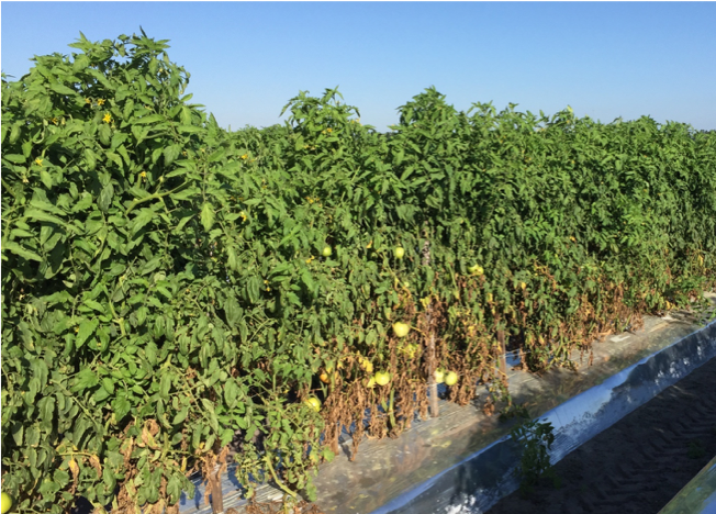 As a plant pathologist, I am often amazed by the extent of disease and the variety of symptoms on plants in grower’s fields. For bacterial spot disease of tomato, the most destructive symptom is the extensive blighting or defoliation, which you can see in Fig. 2 where the foliage in lower canopy is completely dead. I have observed these symptoms in tomato field trials that were inoculated with X. perforans, the causal agent of bacterial spot. Defoliation can directly affect fruit yield by affecting fruit size or it can lead to fruit being exposed to excessive sun exposure that can result in sunscald damage to the fruit which directly affects fruit quality. Therefore, bacterial spot disease of tomato can lead to major yield losses and growers long for an effective management strategy all over the world. For many years, tomato growers have used commercial Cu bactericides (up to 500 µg/ml of metallic Cu concentration/up to 2 times a week). One of the main reasons that bacterial spot disease of tomato is so difficult to control is that the bacterial strains have become tolerant to copper as a result of the extensive use of copper (Fig. 3) Therefore, we often receive questions from tomato growers in grower’s meeting and field days asking for novel and ecologically-friendly management methods as an alternative to Cu bactericides. [For more information about bacterial spot disease of tomato in Florida, USA, please check our outreach publication.]