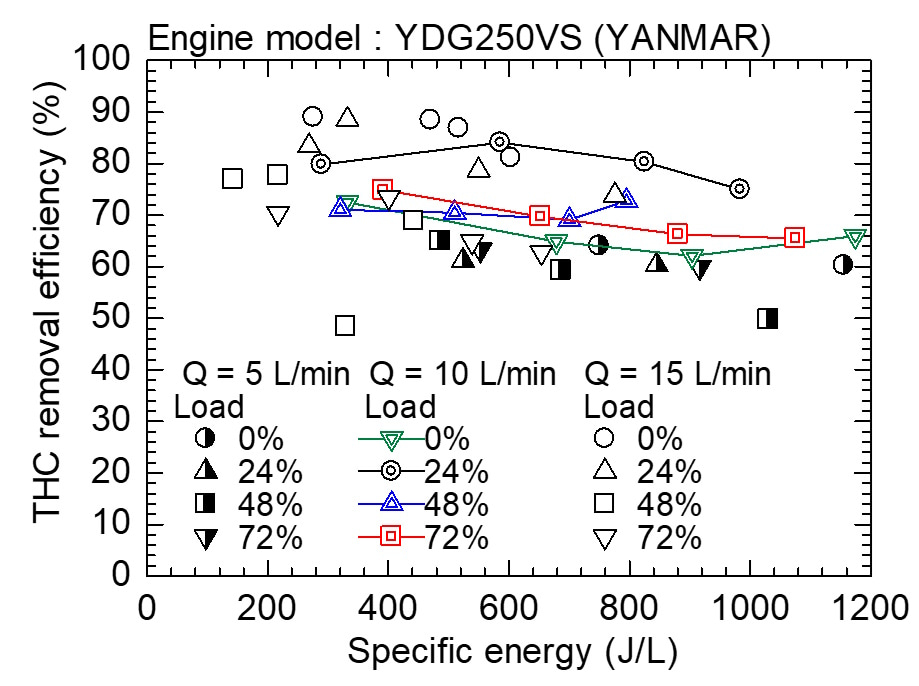 Removal efficiencies of hydrocarbons obtained under different plasma operating conditions.