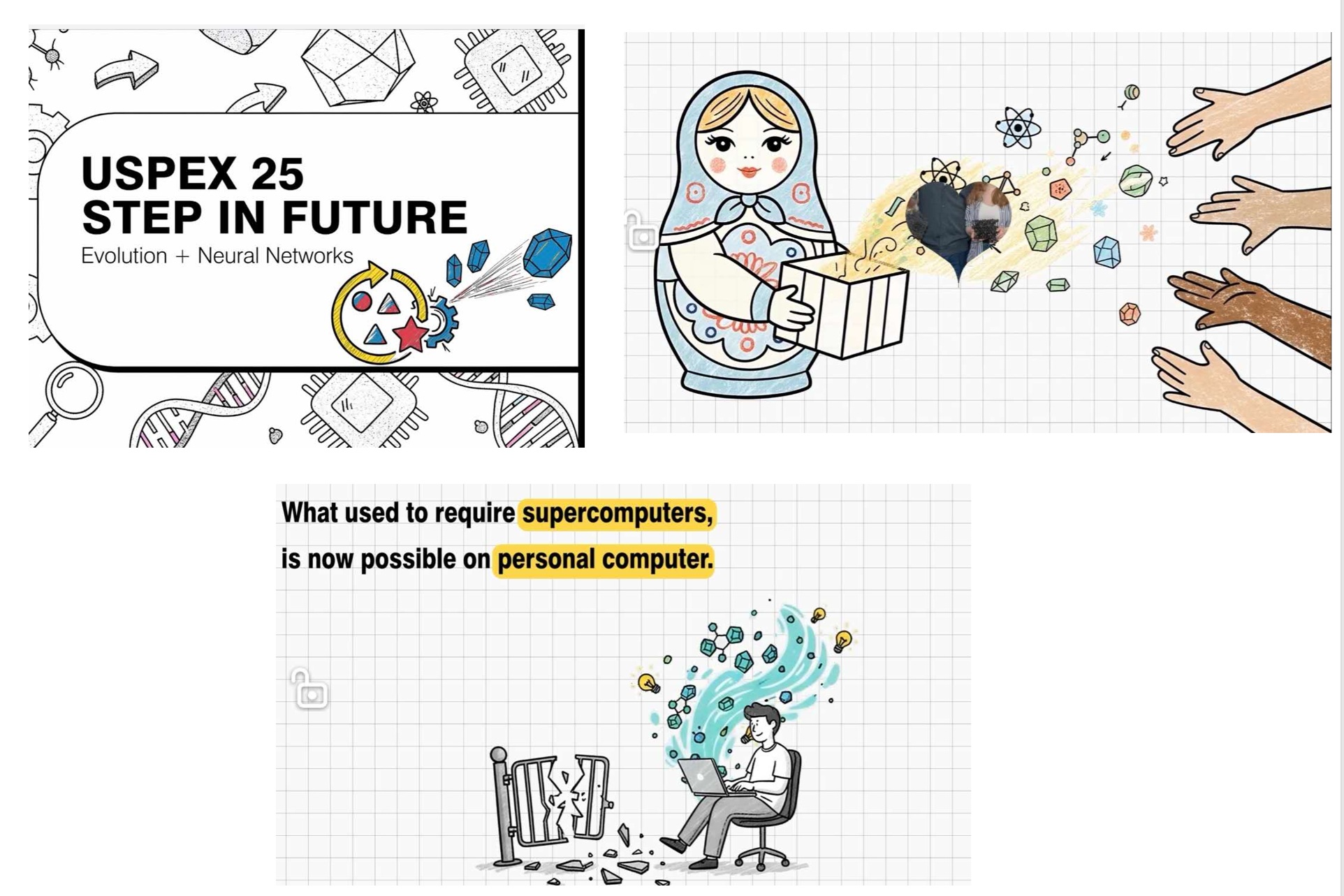 Have fun: AI-generated cartoon about USPEX 25