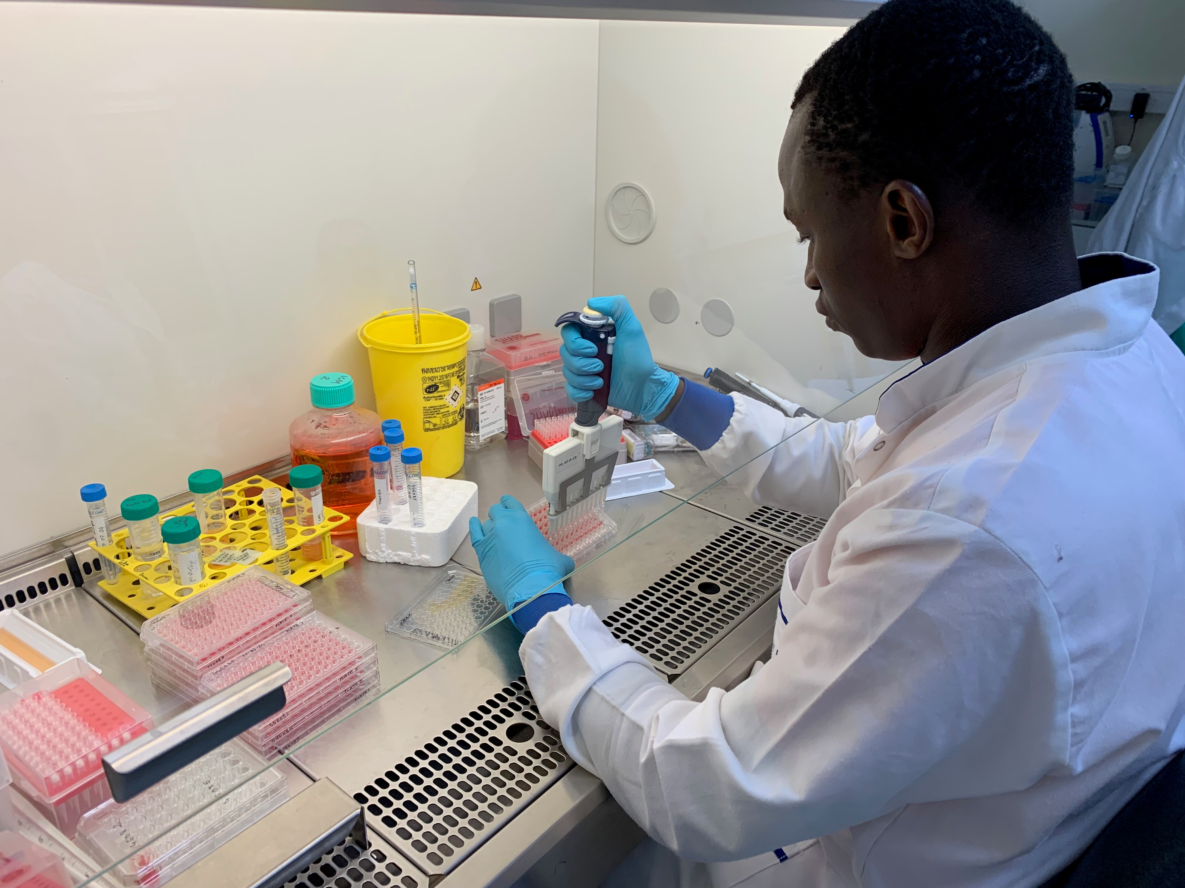 Laty Gaye Thiam setting up ex vivo GIA assays. Combining the parasites with the antibodies from vaccinees of the phase 1 PfRh5 clinical trials. These experiments allow us to test how active the antibodies are against the most diverse and complex parasites - truly putting them to the test!