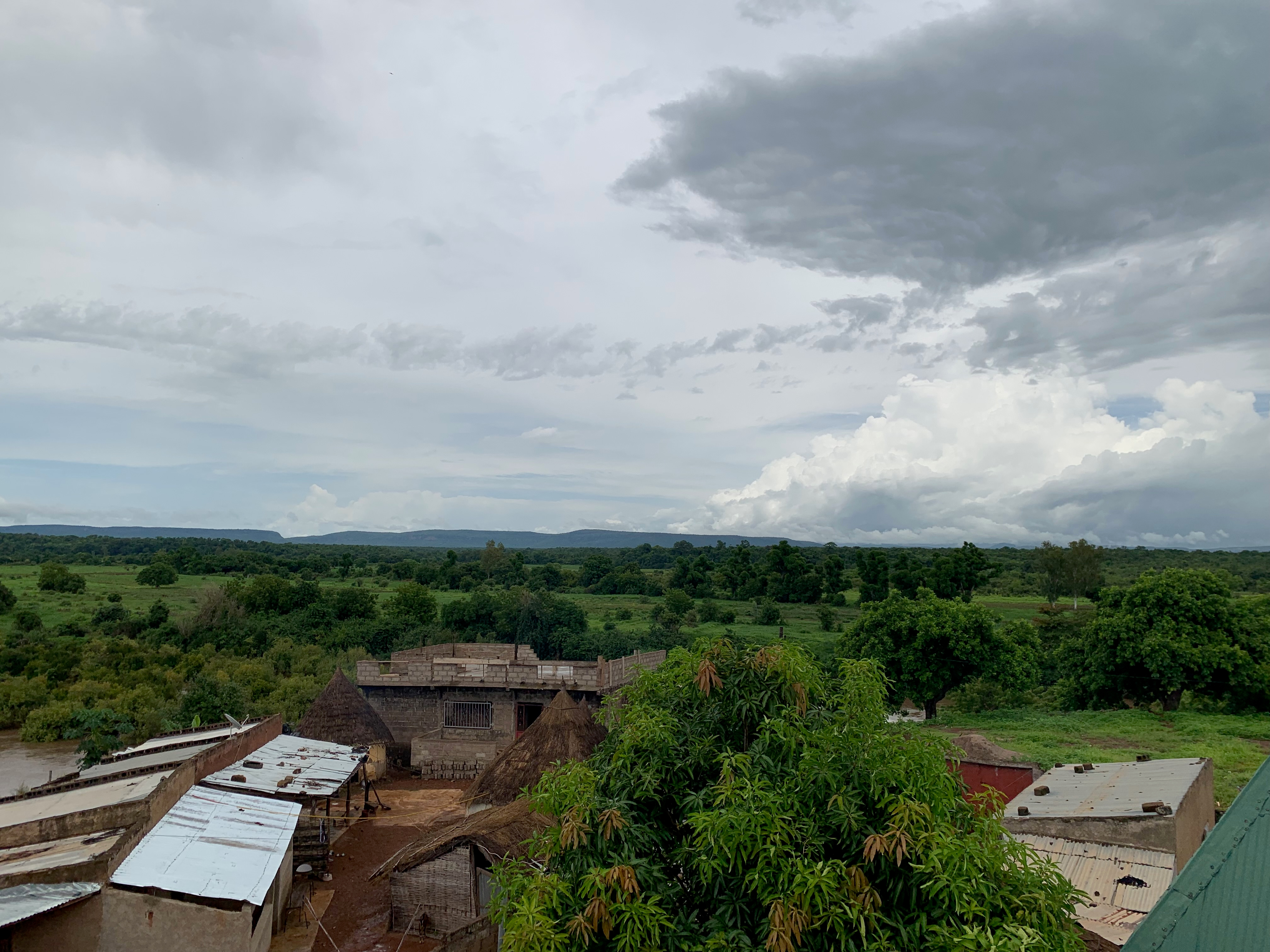 Kédougou vu de la fenêtre de la station de recherche sur le terrain avec le fleuve
