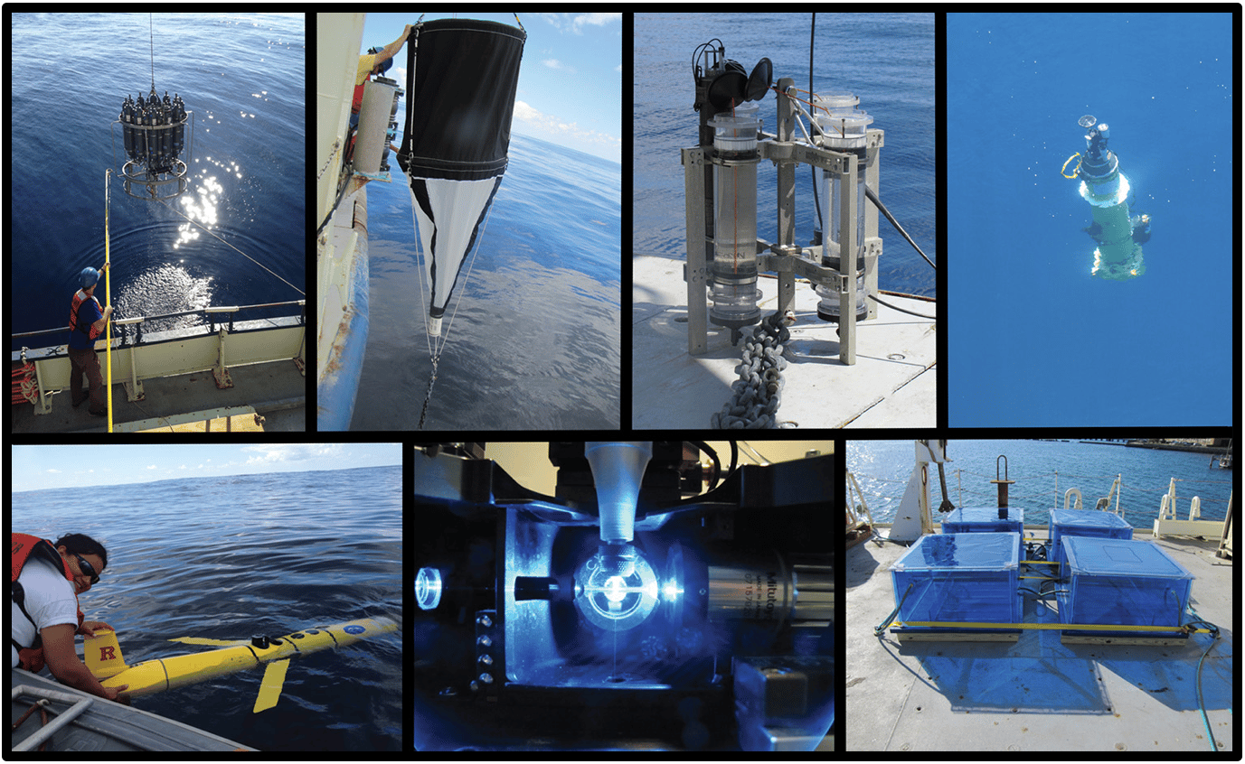 As samples and data were further processed in the years following the cruise, it was exciting to see how it coalesced to reveal virus facilitation of carbon export out of the surface ocean to depth. Our lipid biomarkers acted as a critical backbone and scaffold for interpreting the interactive dynamics between host and virus, and as we layered on the associated TEP production, particle aggregation, sinking particle fluxes, and other in situ observations, the ecosystem and biogeochemical ramifications of EhV infection became evident. Very high fluxes of particulate organic and inorganic carbon were raining down from actively infected E. huxleyi blooms into the mesopelagic where it is respired at depth. Hence, EhVs appear to enhance the pumping and sequestration of carbon rather than retard it.