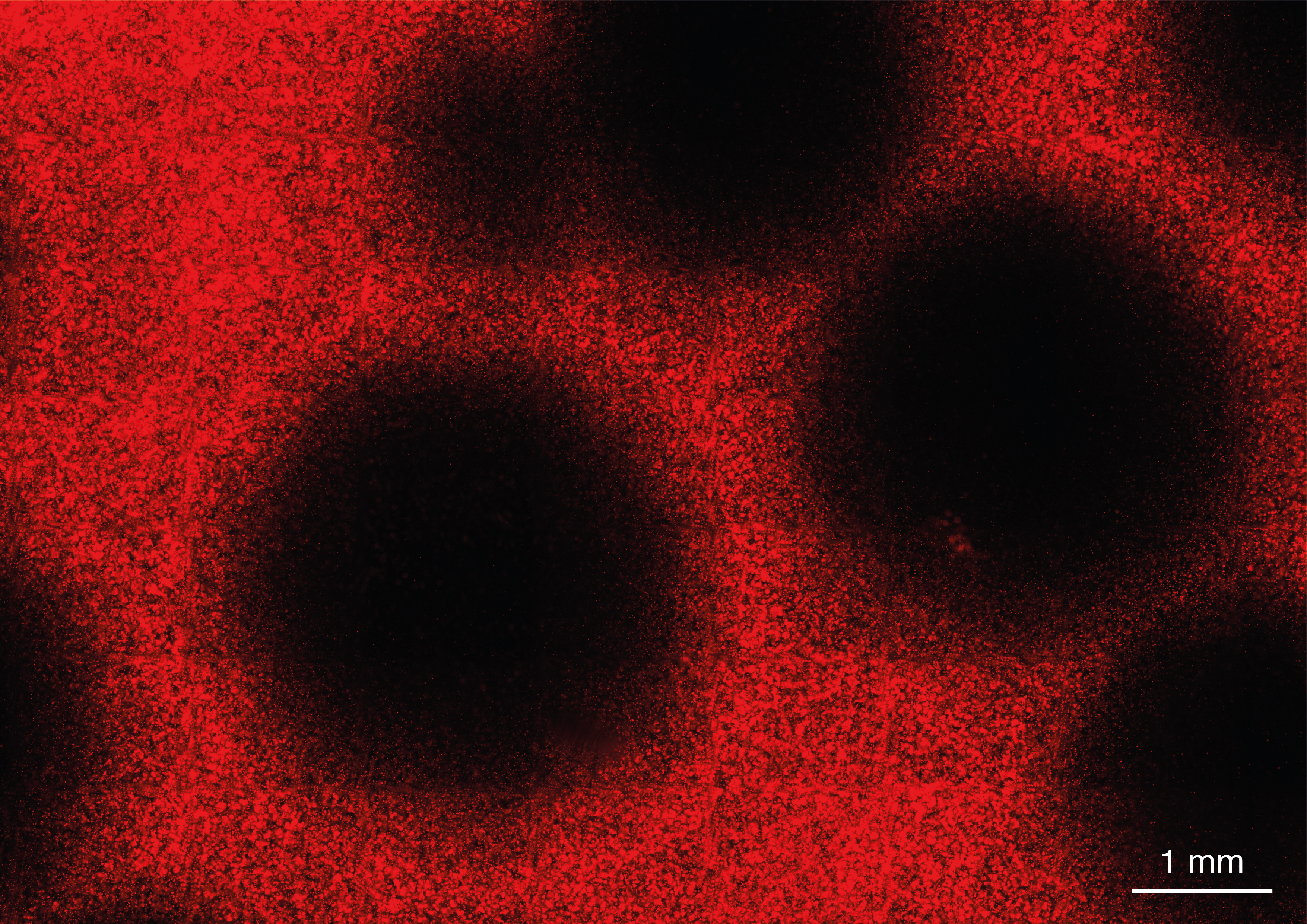 We started by looking at the patterns of specific lipid biomarkers across the plaque. These lipids were shown to be reduced or induced during infection in liquid cultures in previous lipidomics studies (2), and we were interested in observing differences between them. Already after the first plaque analysed, we detected astonishing variability in the induction patters of lipids which until then seemed to behave the same throughout the population. For example, some lipids appeared in higher intensity at the centre of the plaque, while others were induced at a greater distance from the plaque centre. One lipid even had a unique rink-like intensity pattern, thus far unexplained. A plethora of intensity patterns across the plaque suggests the existence of different metabolic states during the infection process. Correlating these states with different phenotypes might allow us to better define the infection states that occur during infection. It can also help us in the future to develop sensitive metabolic biomarkers for detection of different states of viral infection in the ocean.