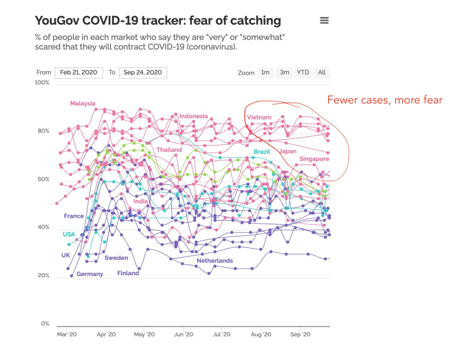 It’s interesting that people in rice cultures were less likely to die from Covid but more anxious about it. This fits with data around the world. Countries with the fewest cases tended to fear the virus the most.