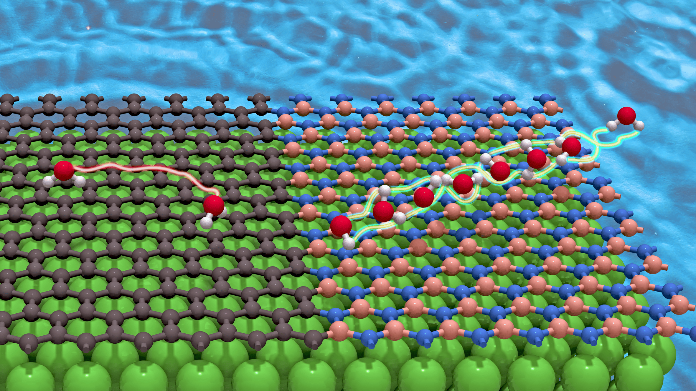In our study, we investigate how water interacts with two structurally similar, but electronically distinct, two-dimensional (2D) materials: graphene and hexagonal boron nitride (h-BN).[2,3] Both are atomically thin, mechanically robust, and technologically promising, yet water behaves very differently on each.
