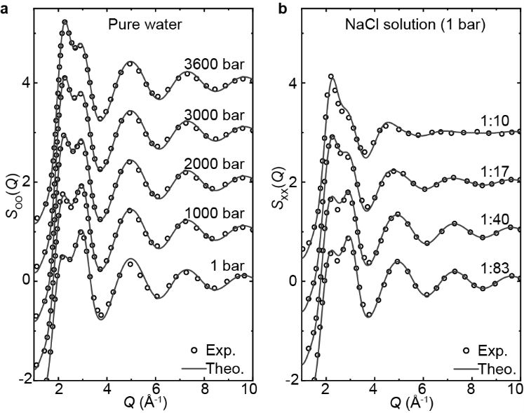[4] Skinner, L. B. et al. The structure of liquid water up to 360 MPa from x-ray diffraction measurements using a high Q-range and from molecular simulation. J. Chem. Phys. 144, 134504 (2016).