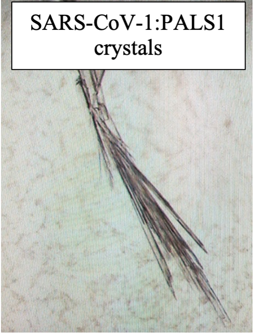 Fig.4 showing the crystals of SARS-CoV-1:PALS1 and SARS-CoV-2:PALS1 complexes with myself at the microscope.