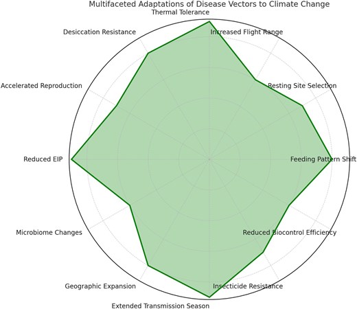 Climate change is causing rising annual temperatures, shifting patterns of precipitation, increased seasonal temperature variation, and more frequent extreme weather events. These climatic changes are reshaping the behaviour and physiology of arthropod vectors, altering the times they are active, extending their seasonal activity, and most alarmingly expanding their suitable ranges. For example, tick-borne pathogens in Western Europe are seeing a shift from seasonal to year-round transmission, and in the last few decades West Nile Virus has spread throughout Europe – with models predicting the disease will reach the UK in the latter half of the 21st century.