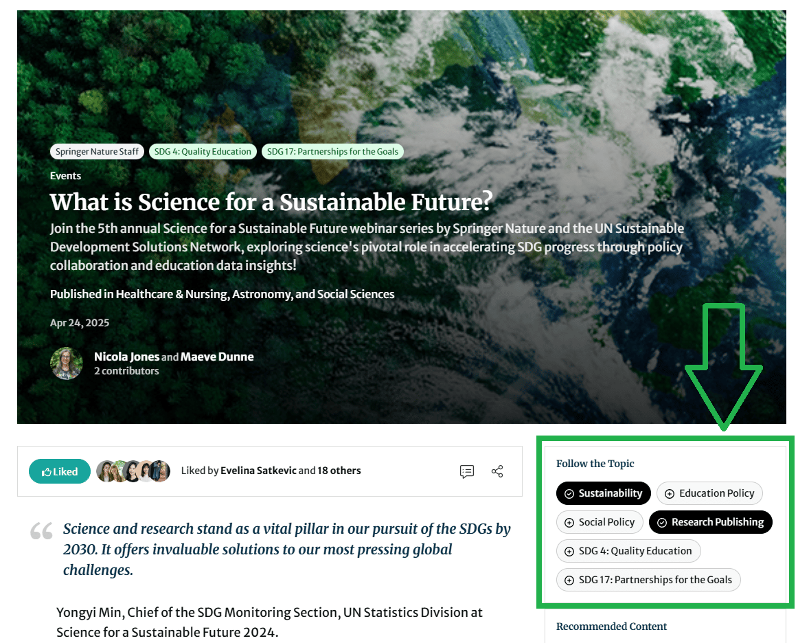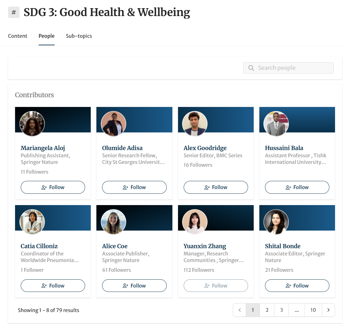Connect with others who share your commitment to sustainable development. SDG Topic Pages not only group content by specific goals but also highlight members who are actively contributing to these conversations. This makes it easier to discover experts, engage with like-minded researchers, and collaborate on ideas that drive progress toward the SDGs.