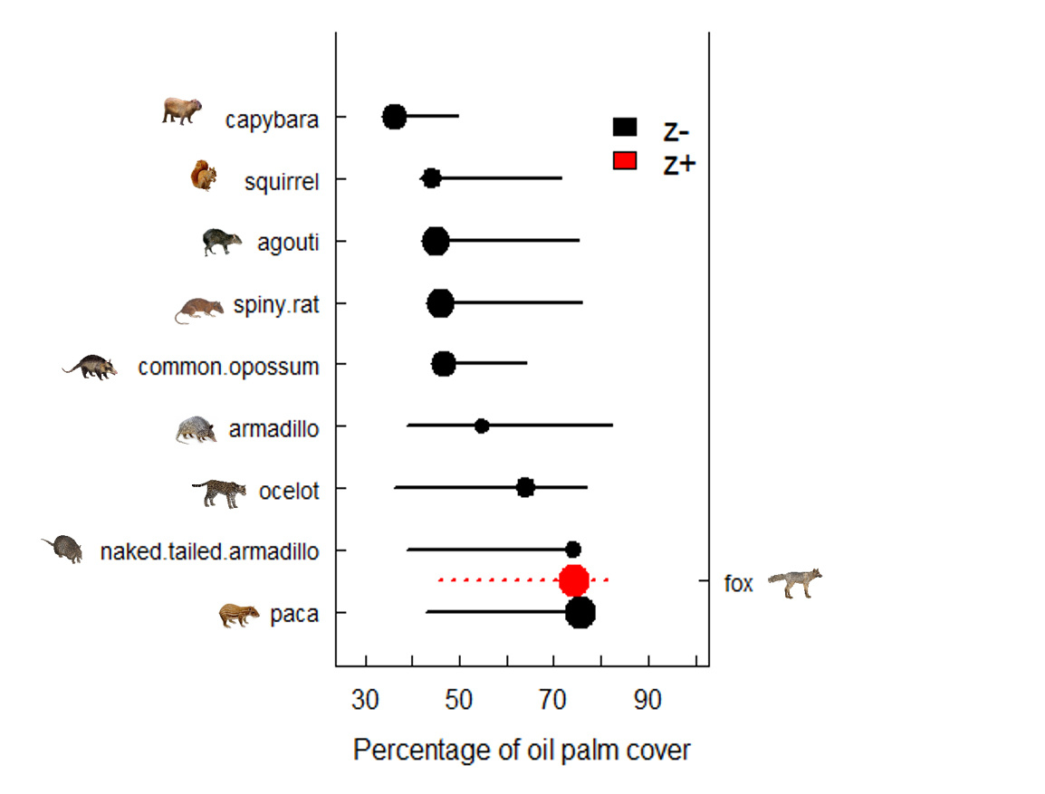 The information provided here, in conjunction with other recent findings, will aid effective management recommendations within the oil palm sector to reduce its impacts on biodiversity. Although in some regions oil palm development in Colombia has been associate with violence and social issues in the past, currently it is an important economic driver with positive effects on people´s lives. Therefore finding the balance between production and mammalian conservation is crucial to make Colombia a global leader in sustainable oil palm production.