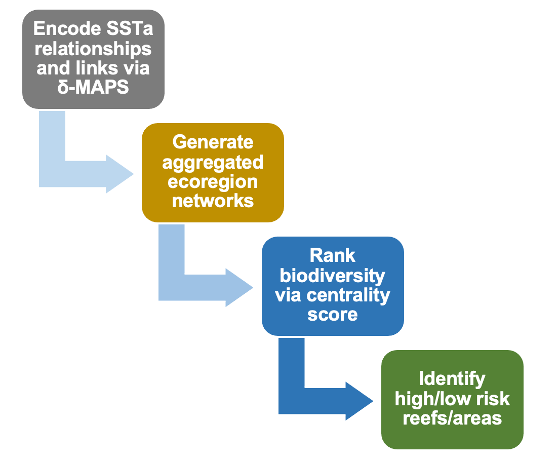 The ecoregion identification and biodiversity score we propose taken together with the recovery potential metric introduced in this work, can identify appropriate temporal and spatial windows where connectivity-based restoration efforts and monitoring should be prioritized. This component is relevant to regional, industry and community groups for which climate adaptation and biodiversity conservation is particularly important. Given the societal relevance of reef ecosystems, the potential of the framework presented is profound.