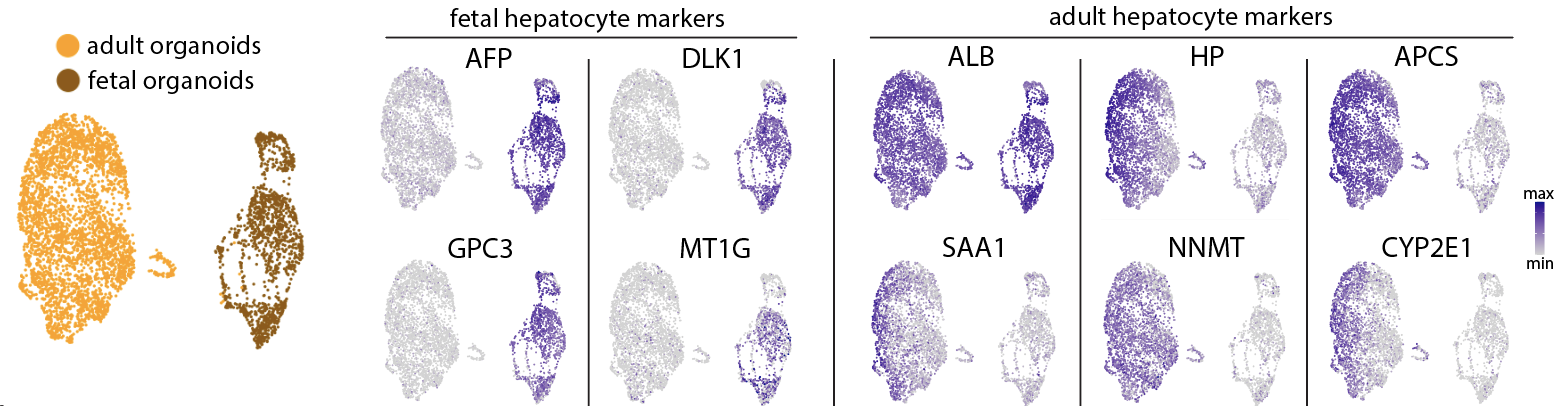 This led us to the question of our new study (ref. 6): what are the reasons behind the distinct growth behavior of fetal vs. adult human hepatocytes when attempting to establish 3D organoid cultures? To this end, we performed both transcriptomic and phenotypic approaches to provide time-resolved maps of the early mechanisms of organoid culture outgrowth, using both fetal and adult hepatocytes.