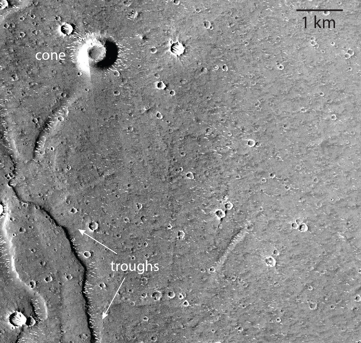 An additional scientific enigma of the Utopia Plantia region is the possibility of mud volcanism. The concept is what it sounds like...flows and cones are formed by eruption of mud rather than lava - in fact there need not be any sort of magma involved. Mud volcanism is caused by the diapiric rise of less dense muddy slurry which can originate through a number of processes. If it occurred in Utopia, it was possibly caused by exertion of pressure in the subsurface due to freeze-down. In this way, all known geological processes in the region might be linked up: a) the region might have or not have been an ancient ocean but it was b) resurface by volcanism and c) sequestered a lot of ice in the subsurface which resulted in d) alteration and extrusion of muddy, altered materials. Even at low temperatures, small amounts of fluids within ice can dramatically alter minerals (Niles et al., 2017). The altered sediments might expand due to hydration or otherwise become pressurized and ultimately be expelled to the surface.
