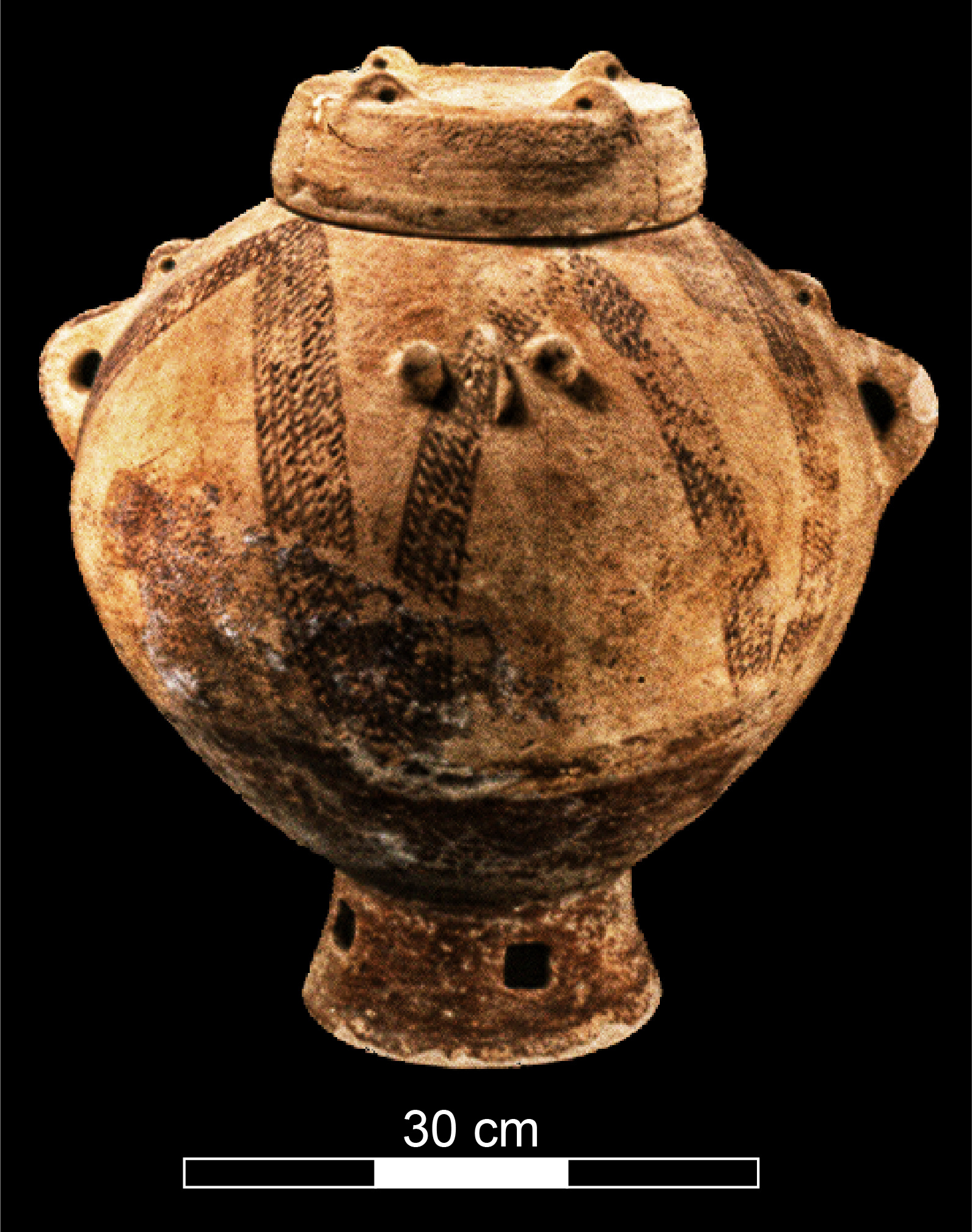 Figure 4: Decorated burial Jar from the Chalcolithic period excavated at Peki'in cave (Photo Mariana Salzberger, courtesy of the Israel Antiquities Authority)
