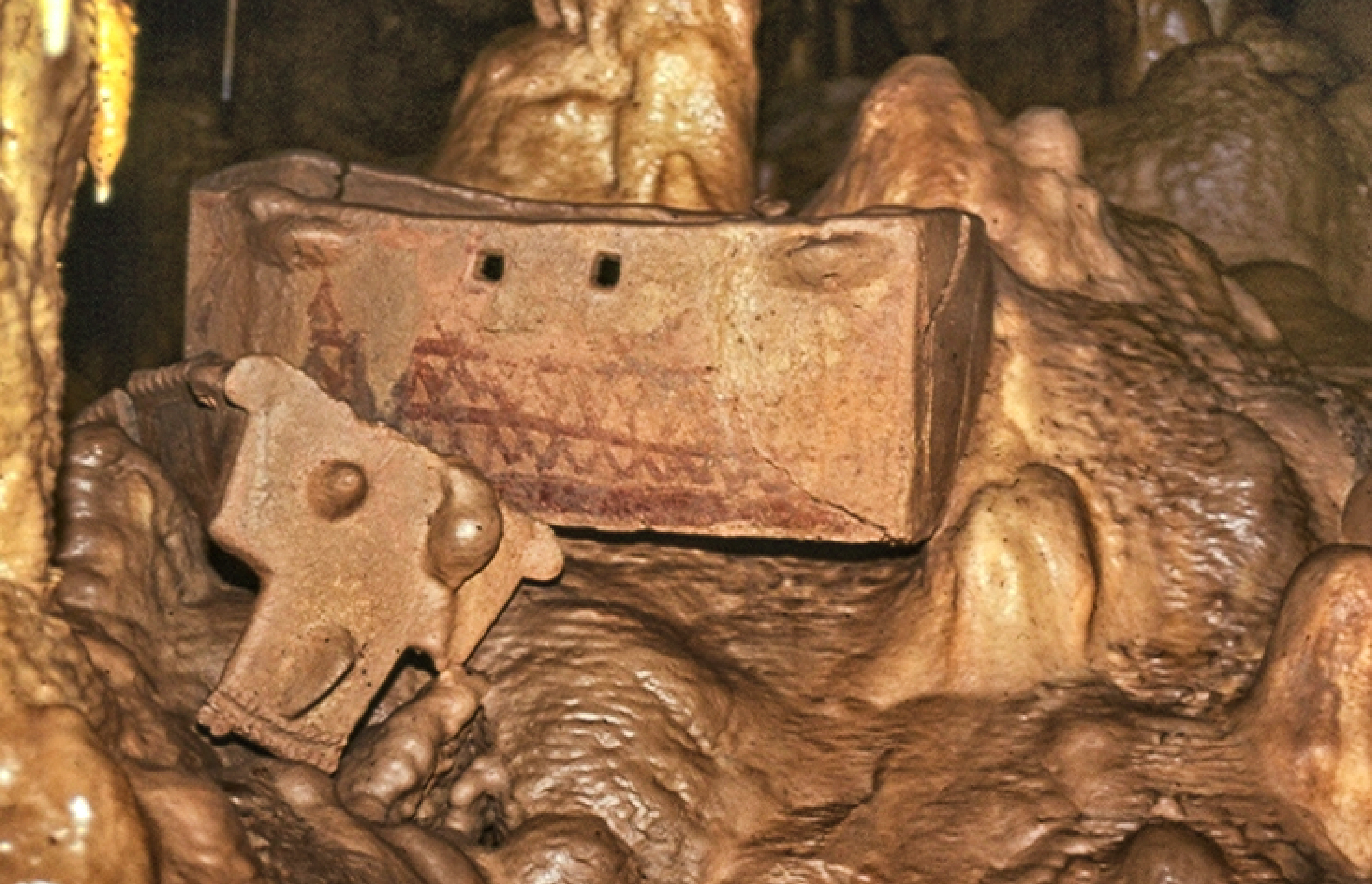 Figure 2: Ossuaries from the Chalcolithic period, excavated at Peki'in cave (Photo Mariana Salzberger, courtesy of the Israel Antiquities Authority)