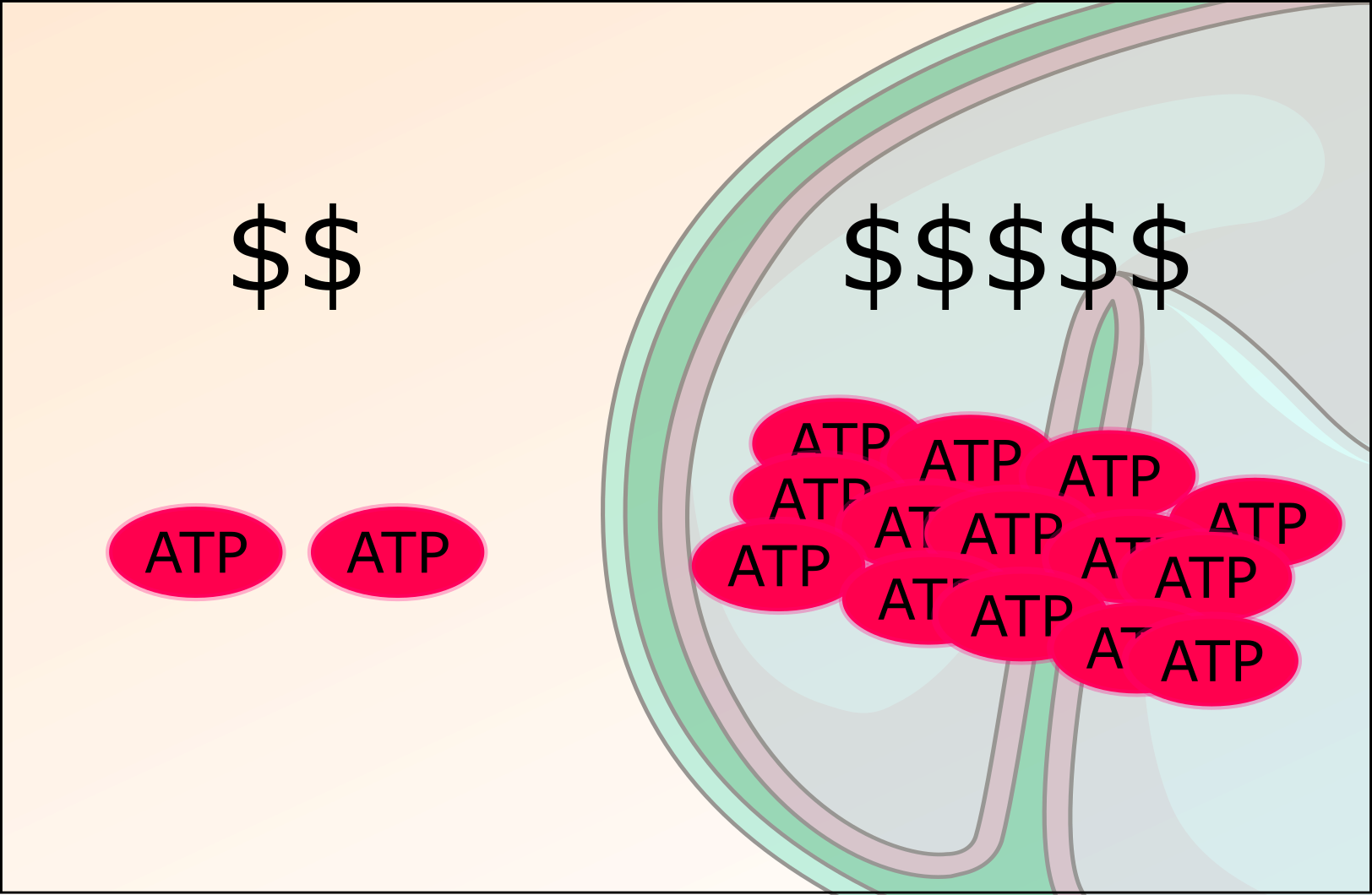Yeast cells have two major routes to get ATP from glucose: they can use only the glycolytic pathway and produce ethanol (low ATP yield), or also use the Krebs cycle and oxidative phosphorylation to completely oxidize glucose to CO2 and water (high ATP yield). However, following the high-yield strategy requires a substantially higher protein investment, therefore, undertaking a low-yield strategy might be more beneficial in high-glucose environments. (Illustration made using open-source icons from Bioicons)
