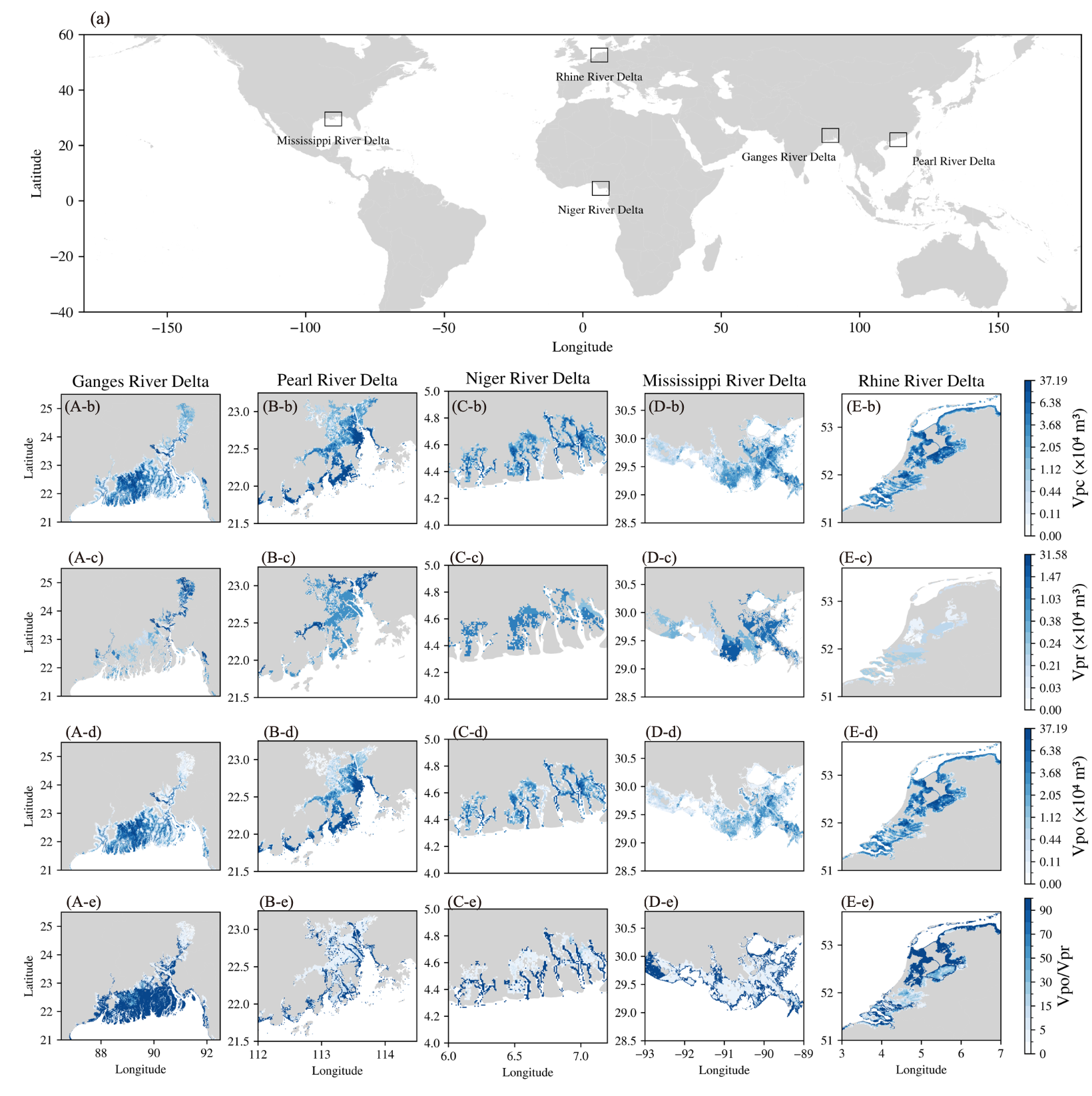 Figure 1. Spatial pattern of flood hazard in deltaic hotspots.
