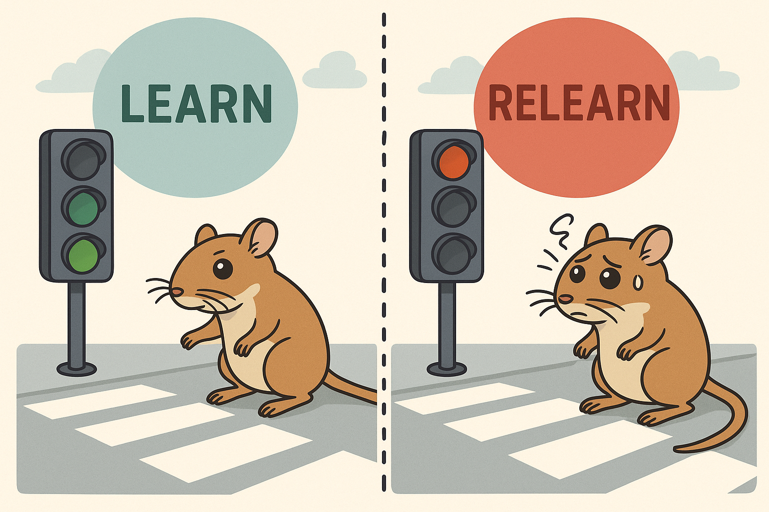At the center of this process lies a simple but powerful principle: mistakes are not a failure of the system, they are its driving force. Dopamine-dependent error signals initiate the neural reorganisation required for flexible behavior, while upper cortical layers consolidate new rules once they prove reliable.