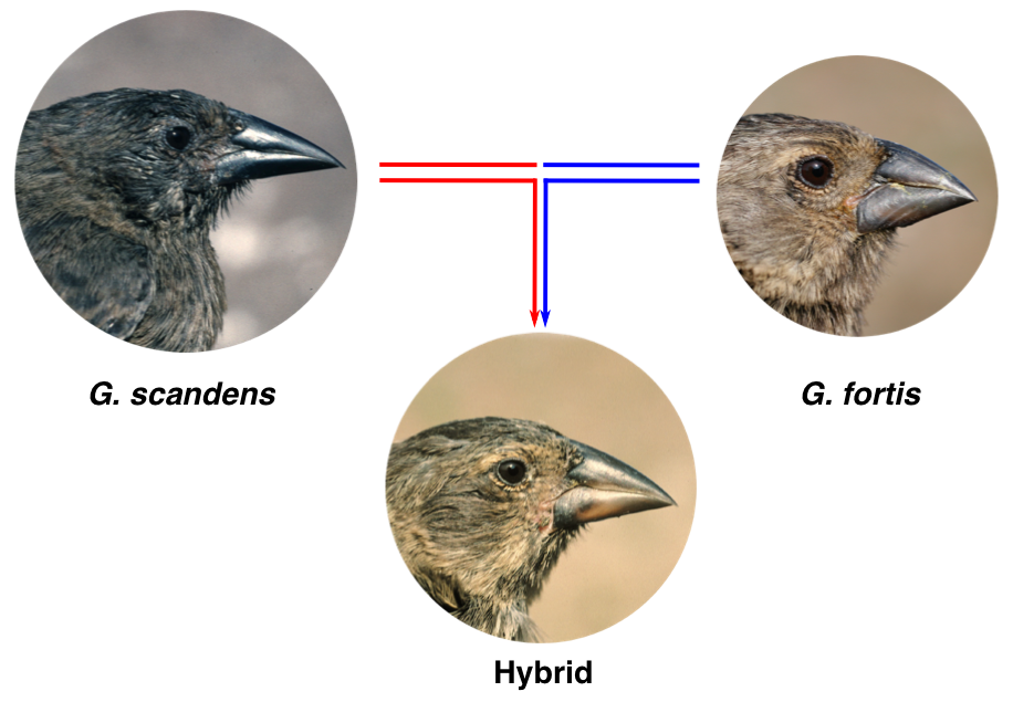 A field study of finches became a lab study of their genes. Our collaborators and co-authors, Leif Andersson and his group at Uppsala University in Sweden, extracted DNA from blood specimens that we had collected in every year since 1988. They have found introgression from G. fortis to G. scandens on autosomes and mitochondria but not on the Z chromosome. This pattern could be due to genetic incompatibilities, as found in several other bird species, but long-term observations of finch breeding offer a different explanation: a predominance of G. fortis female x G. scandens male pairs, coupled with a competitive disadvantage of their (relatively small) sons. This joins an expanding body of research that no longer asks does hybridization occur, but how do genomes combine, and why are they sometimes a success?