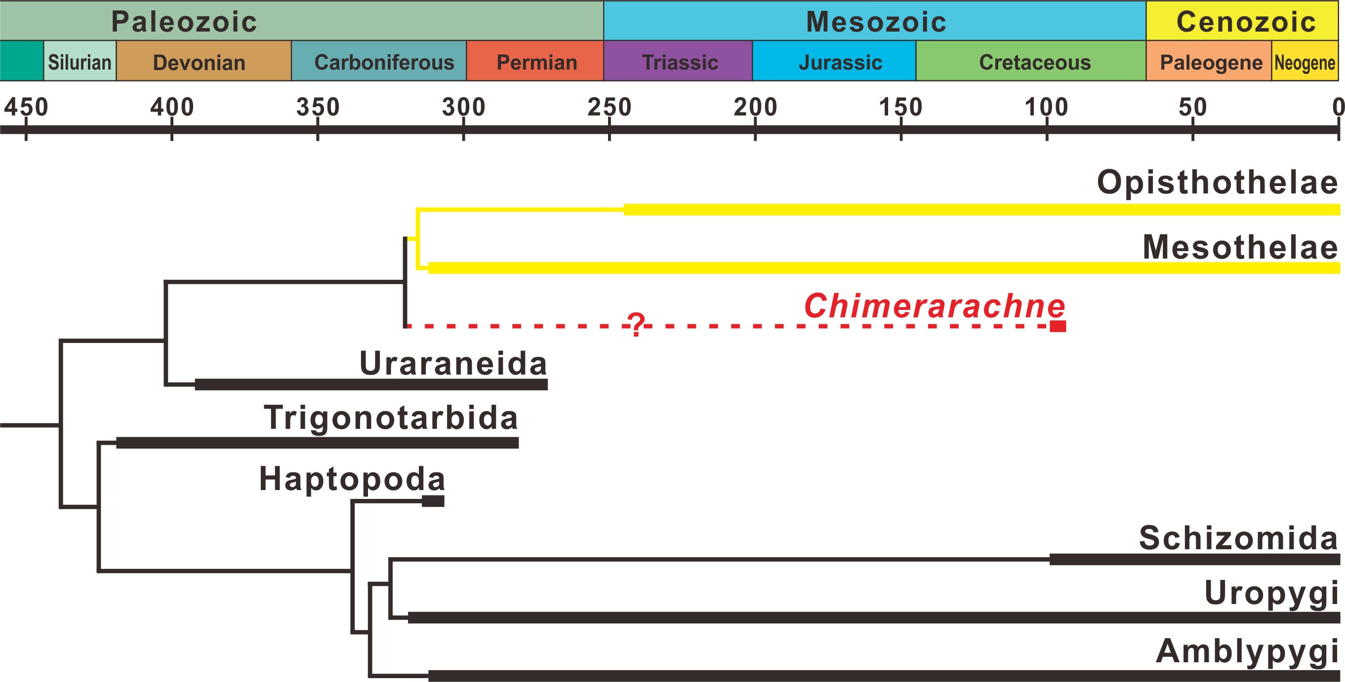 Figure 4. Evolutionary history of spiders and spider-related arachnids.