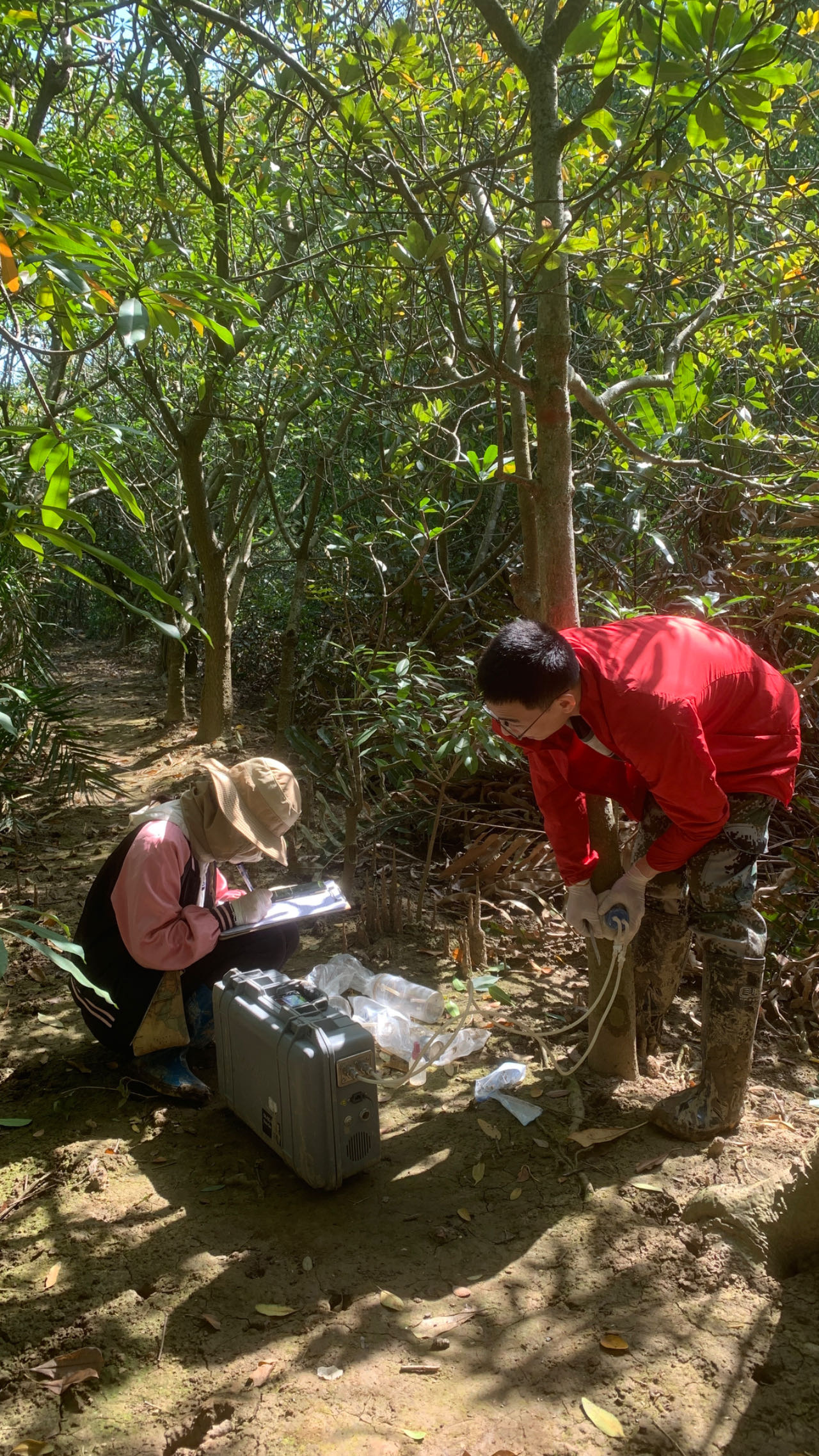 Our journey began deep in the muddy mangroves of southern China. During early field surveys, we noticed unusually high methane concentrations around the roots of certain tree species. Out of curiosity, we placed small chambers directly on the stems to test whether gas was escaping through the bark. To our surprise, the instruments detected clear and consistent methane emissions from the stems themselves. That discovery led us to design a series of in situ measurements at multiple mangrove sites across China. We used gas analyzers to measure methane fluxes from soils, leaves, and stems. The results were striking. Tree stems released far more methane than any other part of the ecosystem, especially near the base, pointing to a strong upward movement of methane from the soil to the atmosphere through the plant.