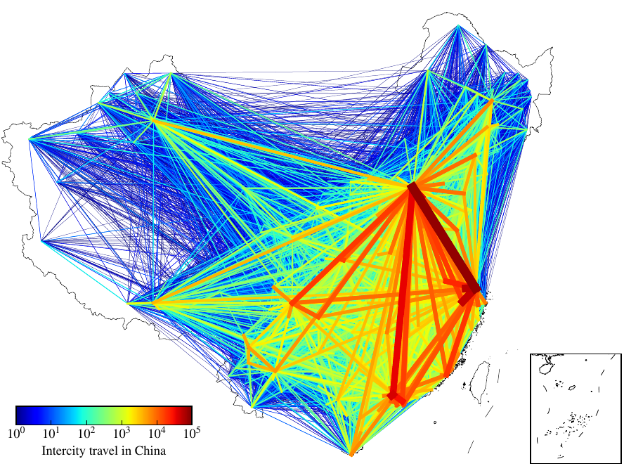 Figure 1. Intercity travel in China. Dataset downloaded from here.