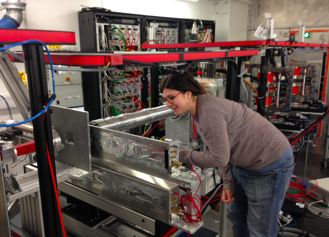 Figure 3. Dr Stephanie Burg using the spin echo small angle scattering (SESANS) instrument Larmor at the ISIS Spallation Neutron Source.