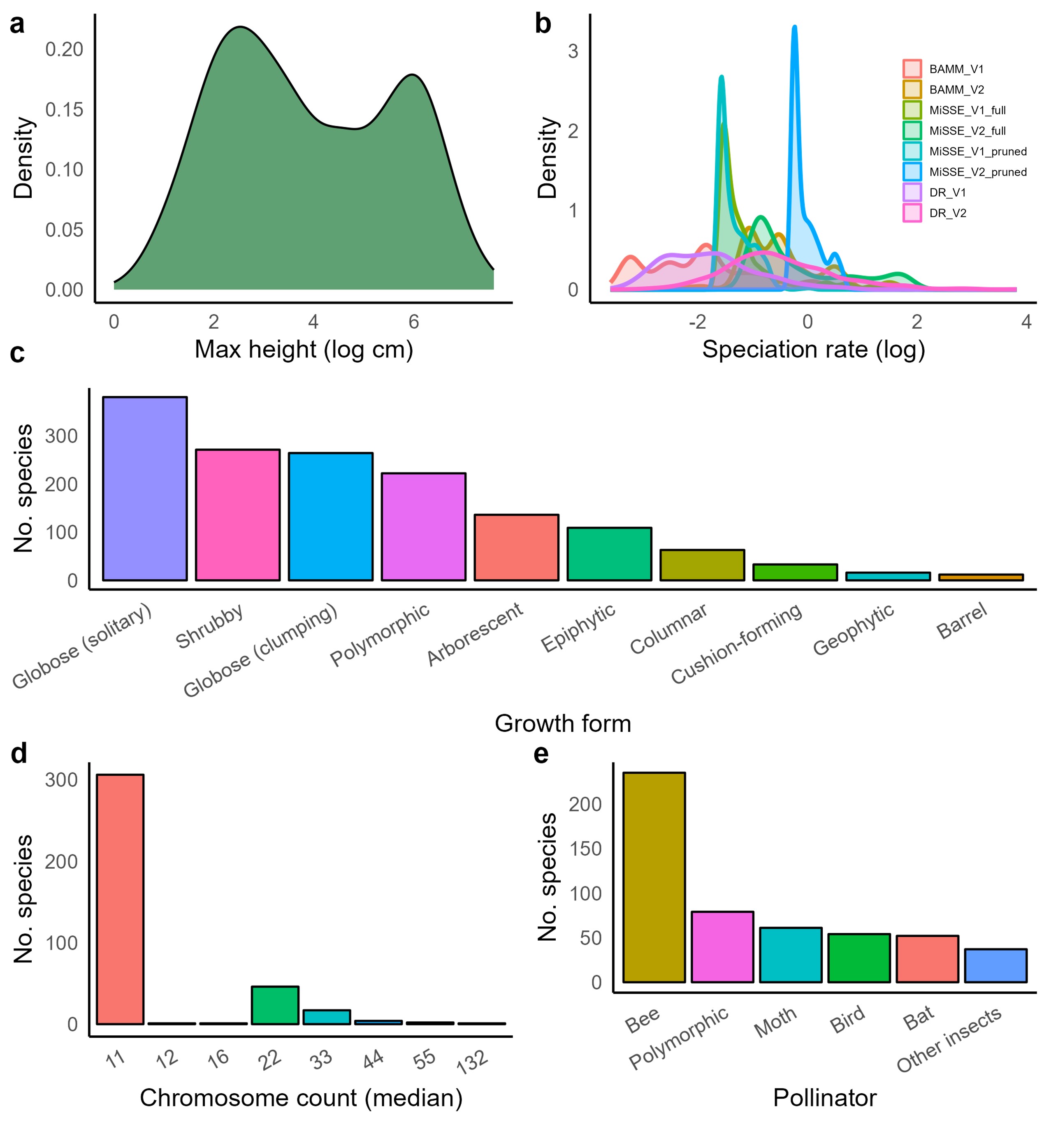 Figure 3: A selection of the trait data we assembled for CactEcoDB. These data capture many aspects of cactus biodiversity and will be useful for macroecological and macroevolutionary research.
