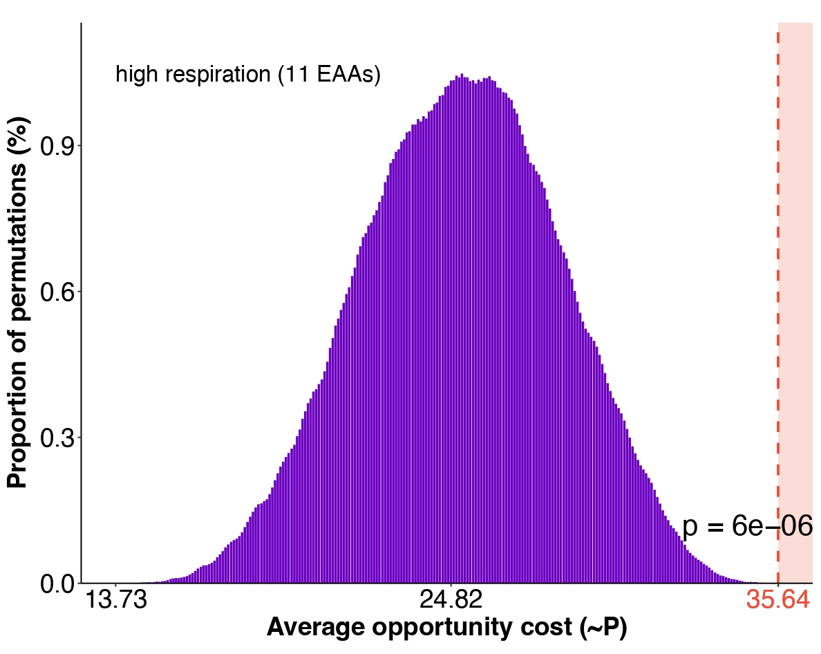 An interesting consequence emerged from these analyses. By outsourcing the most expensive amino acids, organisms reduce their metabolic burden — but this also relaxes constraints on protein composition.
