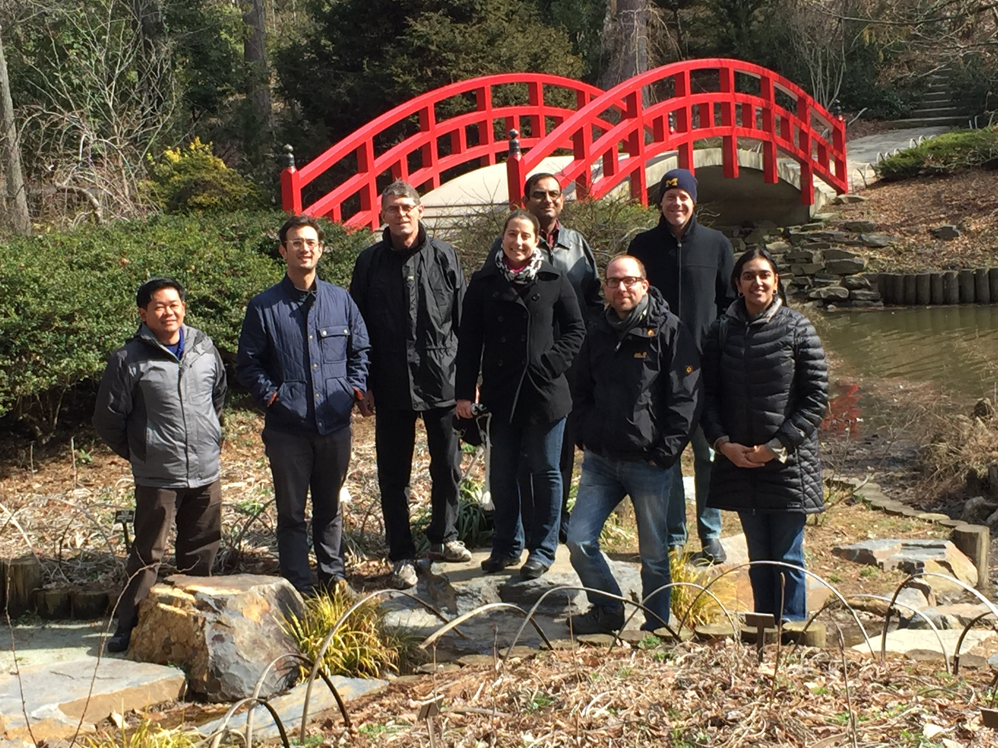 Final NESCent working group meeting, February 2015. Left to right: Wittaya Kaonongbua, Peter Zee, Brook Milligan, Megan Rúa, Sounak Chakraborty, Jason Hoeksema, Bala Chaudhary.