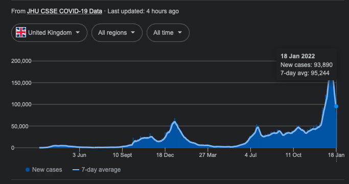 Figure 1. Number of new positive COVID-19 tests in the UK, from 2nd March 2020 to 5th January 2022, as illustrated following a Google search of ‘COVID UK’.