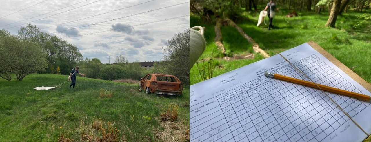 Surveying for ticks by dragging a blanket in an urban park (left) and rural woodland (right) in the central belt, Scotland. Picture: Sara Gandy