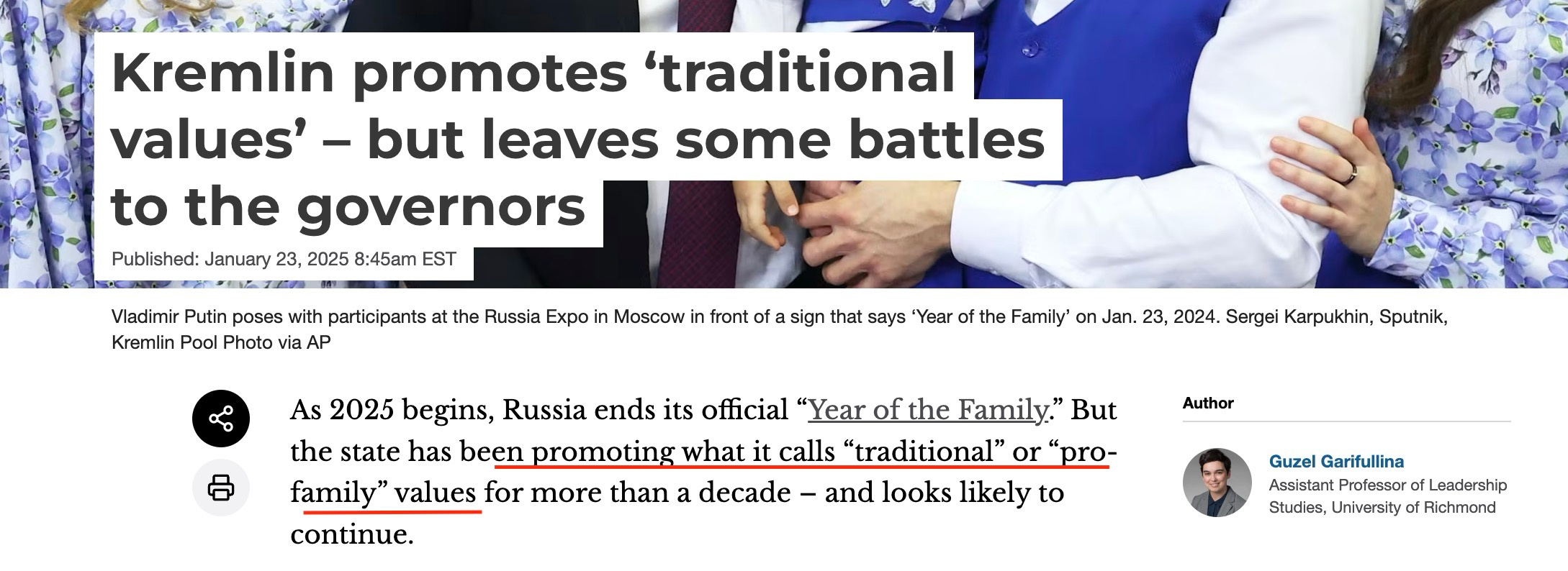 Why is this happening? One idea is that it has something to do with new political rivalries and Trump-like politicians changing world order. For example, observers have described how Russia is promoting family values as an antidote to what it sees as harmful Western liberal values.