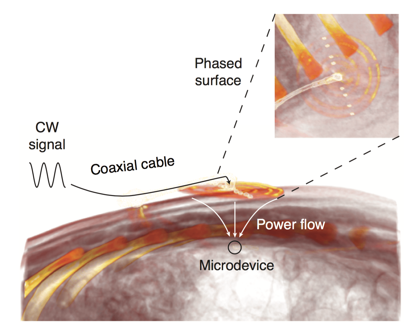 To make the system practical for continuous use, improvements in the long-term reliability of the system will be needed. But looking ahead, we think that the most compelling applications are those in physiological sensors, neuromodulation, or cancer therapy where the device only needs to be activated periodically for short durations. The ability of the phased surfaces to wirelessly power devices that are smaller and deeper than currently possible may pave the way for new approaches to treat disease.
