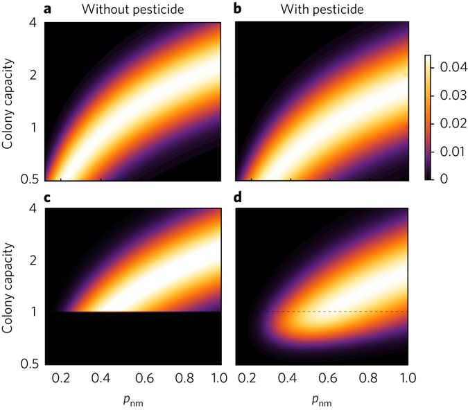 Pesticide reduces bumblebee colony initiation and increases probability of population extinction
