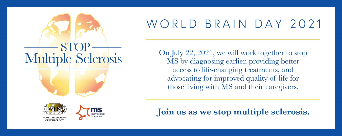 The eighth World brain day (WBD) on July 22 2021 moves to stop multiple sclerosis. The World Federation of Neurology and Multiple Sclerosis International Federation teamed up on this ambitious agenda to stop multiple sclerosis as the theme throughout 2021.