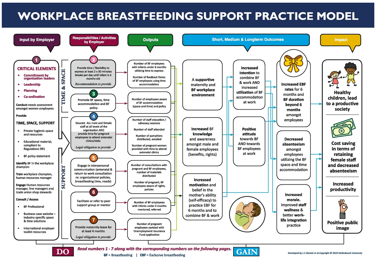 Daniels, L.C., Mbhenyane, X.G. & Du Plessis, L.M. Development of a workplace breastfeeding support practice model in South Africa. Int Breastfeed J 19, 32 (2024). https://doi.org/10.1186/s13006-024-00638-9