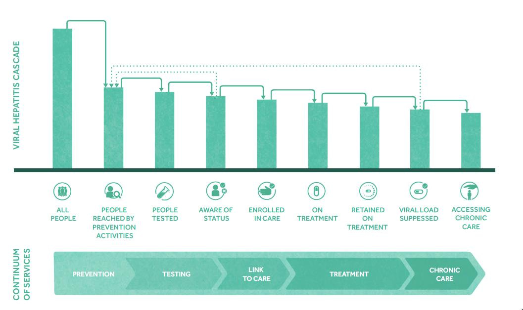 Fig. 1. WHO’s continuum of viral hepatitis services and retention cascade. Reprinted from the Global Health Sector Strategy on Viral Hepatitis 2016-2021, p.19, World Health Organization, copyright 2016.