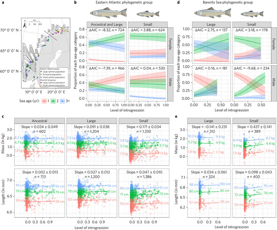 Gene flow between wild and farmed salmon is known to be widespread. Here, the authors show that introgression with domestic conspecifics has demographic consequences for wild Atlantic salmon by altering fitness-related life history traits.
