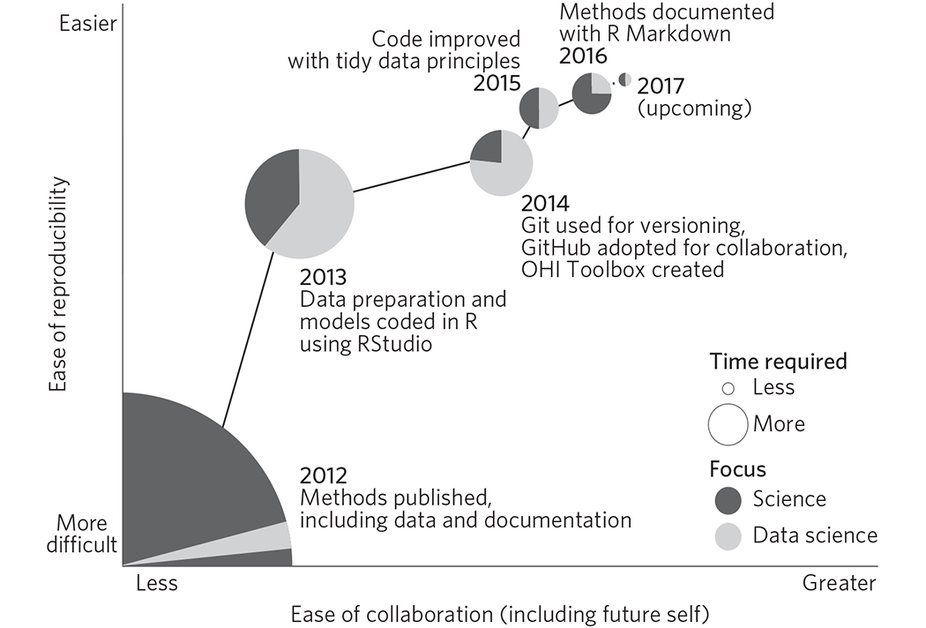 Reproducibility starts with having a transparent and streamlined workflow. Julia Stewart Lowndes and colleagues describe how they achieved this using open data tools for the collaborative Ocean Health Index project.