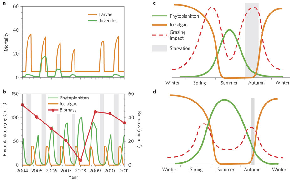 It is not fully understood what factors drive population cycles of Antarctic krill, one of the most abundant animals on Earth. Contrary to previous work focusing on climatic factors, here the authors identify intraspecific competition for food as the primary driver of 5–6 year oscillations.