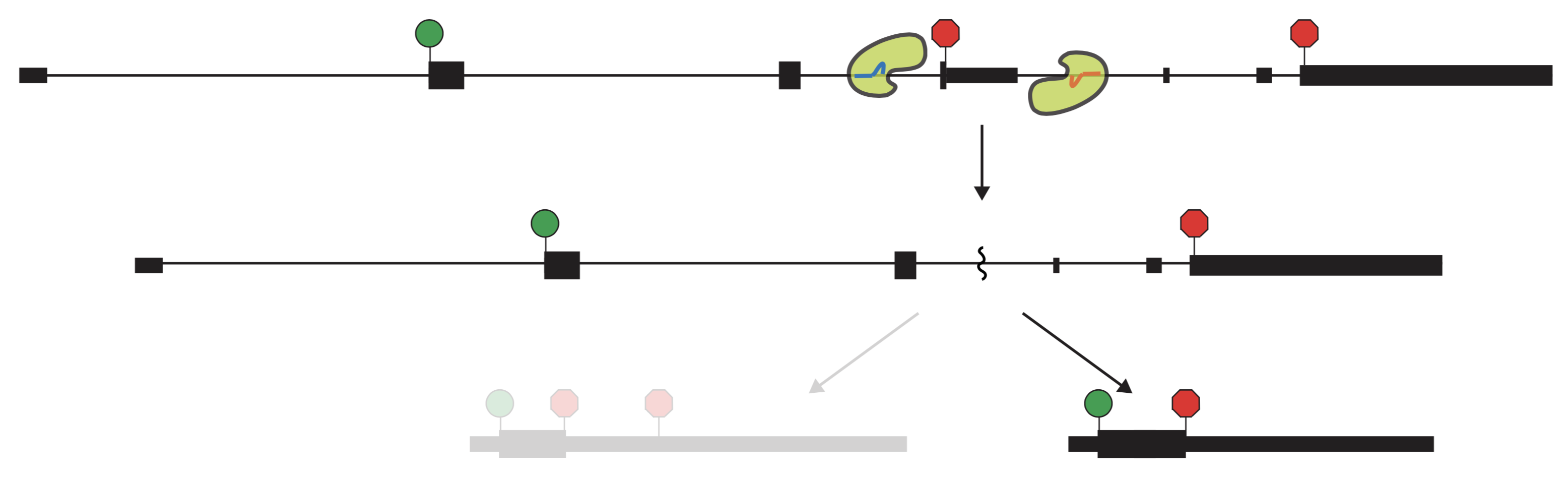 Overall, we hope that the ongoing development of new DNA- and RNA-targeting CRISPR/Cas9 systems will provide a diverse toolkit to manipulate various forms of RNA processing including cassette exon exclusion/inclusion, alternative 5'/3' splice site selection, alternative branchpoint selection, and alternative cleavage and polyadenylation site choice.
