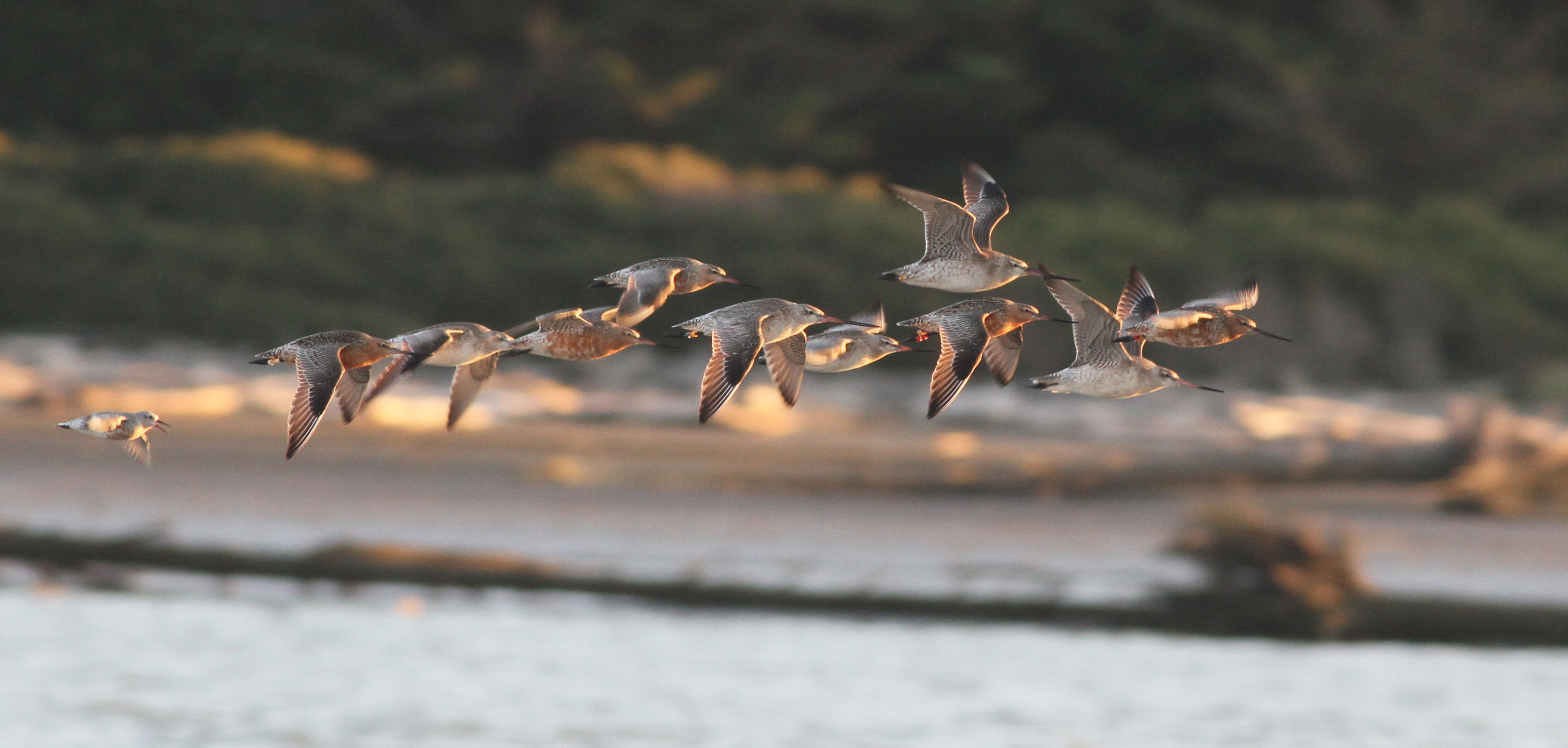 In fact, I have personally witnessed, and in most cases photographed (however blurry), his every departure from New Zealand since I arrived in 2007 to start that PhD project. Godwits depart New Zealand across a 4-week period in March–early April, and 4YYRB is always in the first 25% of individuals to leave the Manawatu. As we learned early on, relatively early departures during this window are typical of large, pale individuals, which breed in southern Alaska; more northerly breeders are smaller, redder, and migrate and breed up to 2–3 weeks later, according to the later snowmelt at their eventual tundra nest sites. But it wasn’t until about 2015 that we realized that something else was going on: the 4-week window of departures was getting incrementally earlier across the years, at about half a day per year.