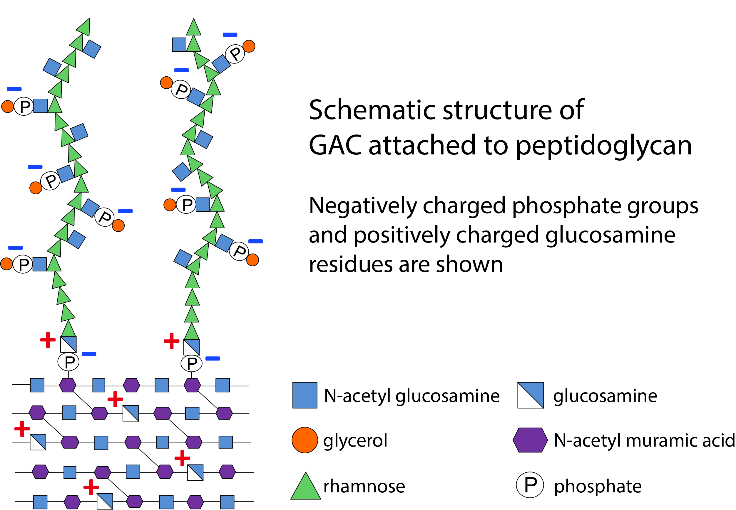 If your throat feels raw or like it's on fire, there is a chance that you have pharyngitis caused by the Gram-positive bacterium Streptococcus pyogenes. If left untreated, streptococcal pharyngitis may progress to acute rheumatic fever (ARF) and rheumatic heart disease (RHD). RHD is rare in wealthy nations, but is the most common heart disease in children and young adults in developing nations and amongst indigenous populations. This life-threatening illness could be prevented with a vaccine against S. pyogenes. A focus of studies in our lab is the rhamnose-containing glycopolymers, so-called rhamnopolysaccharides, that decorate the peptidoglycan of many streptococci. In S. pyogenes, the glycopolymer termed Group A Carbohydrate (GAC) is considered a promising vaccine candidate due to its uniform and invariant expression in different S. pyogenes serotypes, absence in humans and high immunogenicity, eliciting antibodies that inhibit infection. This glycan is a major component of the cell wall and is the basis for the Lancefield serological grouping of beta-hemolytic streptococci proposed by a prominent American microbiologist Rebecca Lancefield in 1933.