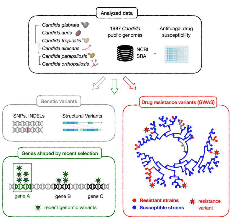In summary, our work illuminates how these pathogens adapted to humans and to antifungal drugs. Beyond the new knowledge generated, our catalogue of variants, selection signatures and drivers of drug resistance is a valuable resource for future confirmatory experiments, which could lead to better treatments for Candida infections.