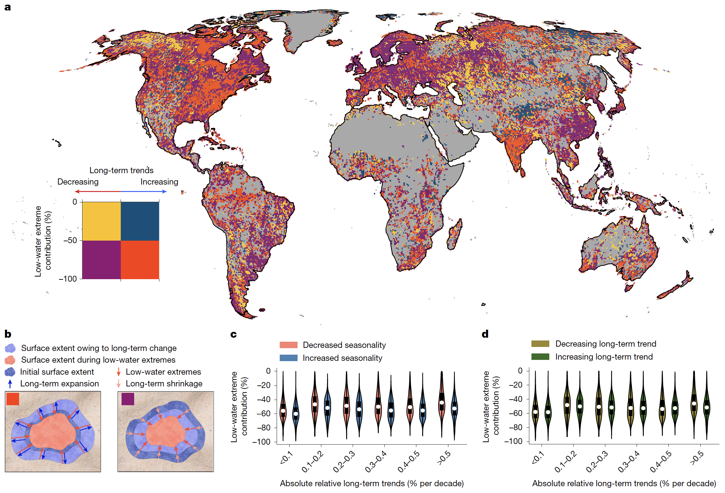 Our team has long been fascinated by the complex dynamics of lakes worldwide. Our research began with extensive field expeditions and satellite analyses, initially focusing on the Tibetan Plateau, where large lakes rapidly expanded in the early 21st century4. Observing contrasting behaviors in different regions—some lakes expanding, others shrinking, and some experiencing pronounced seasonal variability, such as China’s Poyang Lake located in densely populated regions—we sought to answer the key question: “What are the dominant factors shaping lake-surface-extent dynamics at a global scale?”
